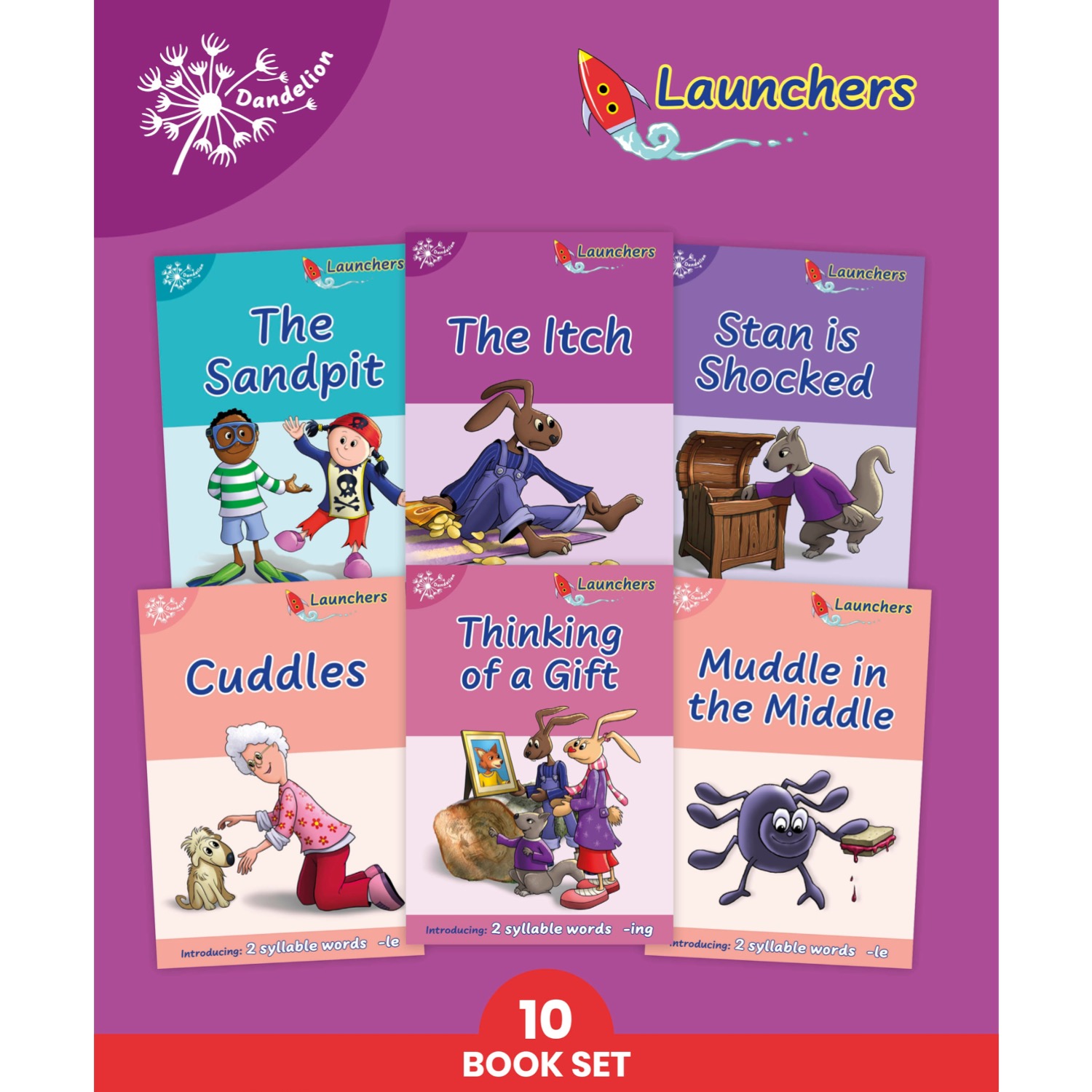 Phonic Books Dandelion Launchers Stages 16–20 is a fully decodable phonics book series designed for readers ready to tackle this next level of complexity. The series focuses on two-syllable words, common suffixes, and advanced sound–spelling patterns.