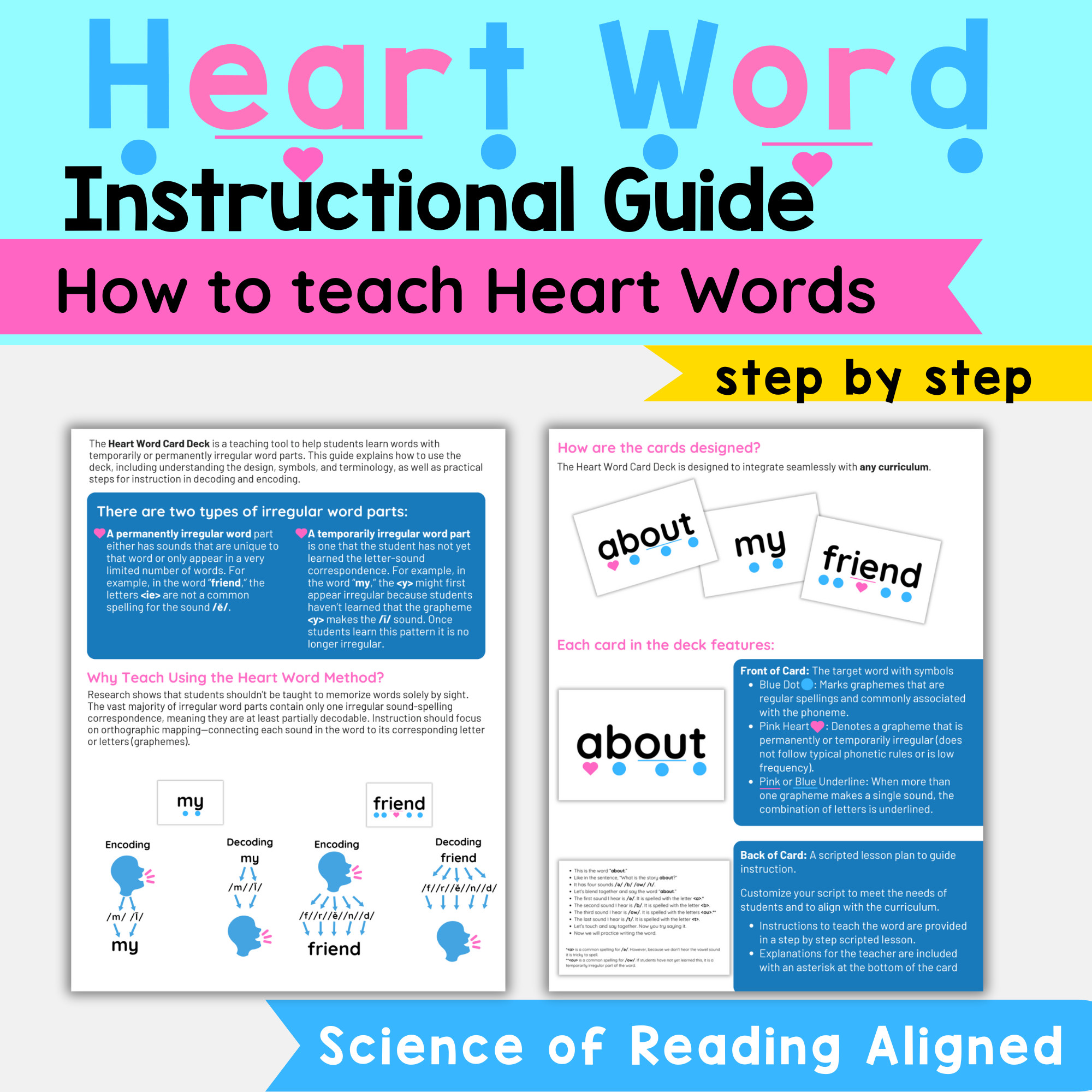 ✔ Explicit guidance on decoding and encoding heart words