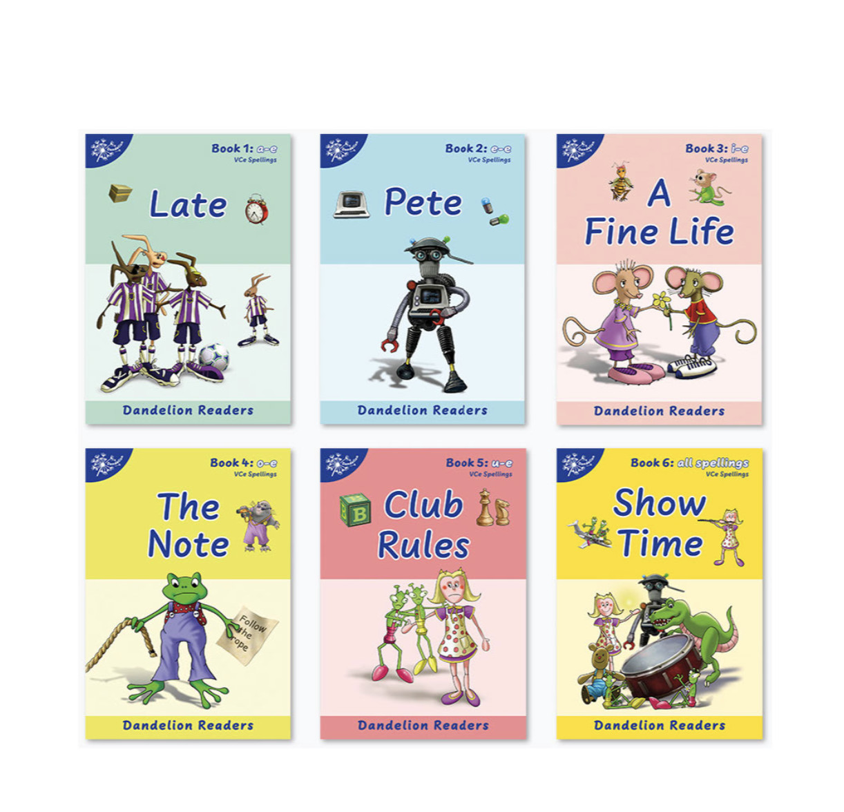 Designed for beginning readers, Dandelion Readers VCe Spellings introduces split vowel spellings in a clear, structured way. Each book focuses on one VCe spelling pattern, helping students connect phonics instruction directly to meaningful reading.